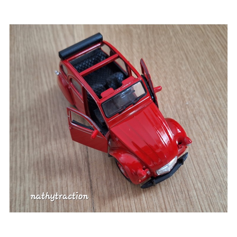 Cette jolie miniature 2CV rouge à rétro-friction fera le bonheur pour les collectionneurs et passionnées de deudeuch.