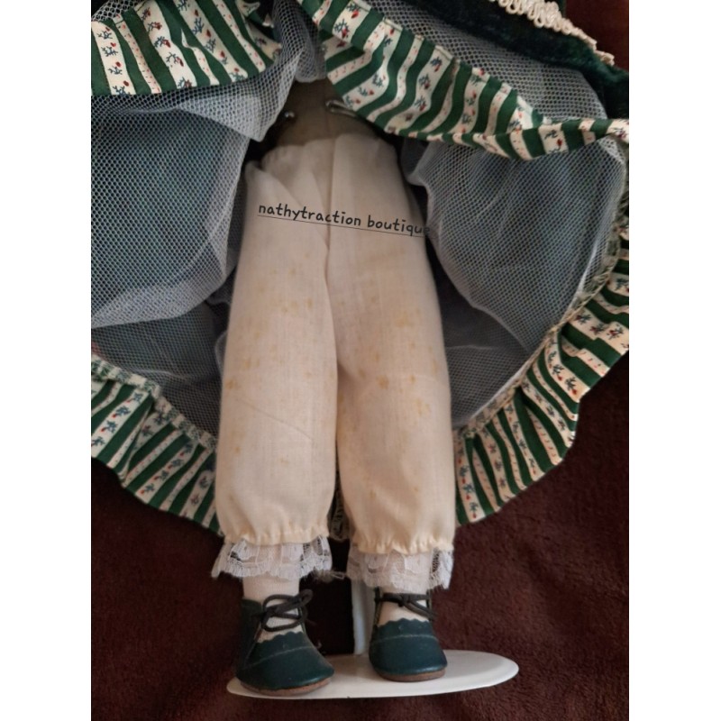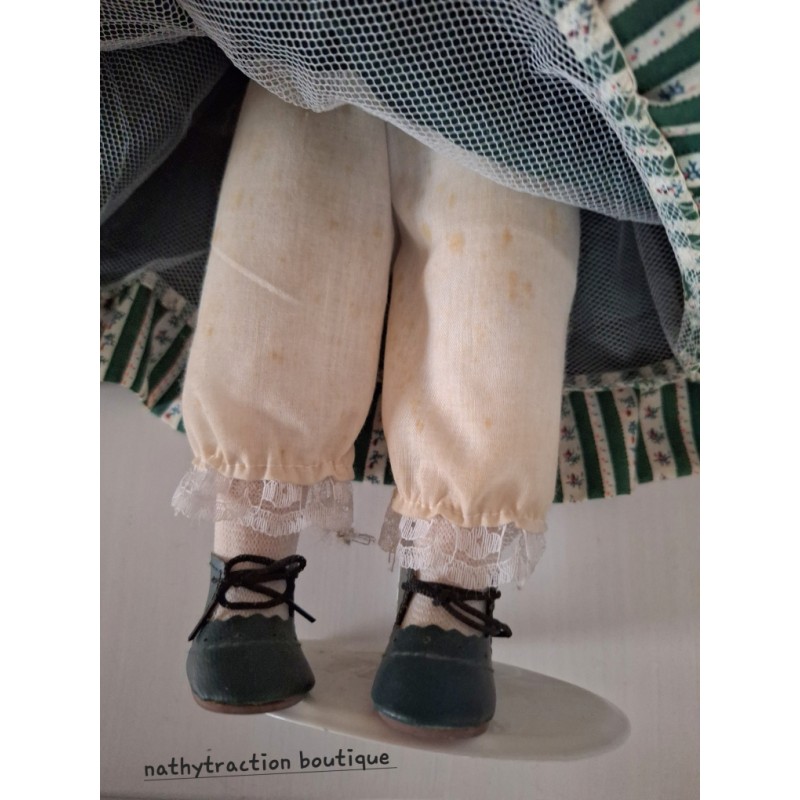 Cette magnifique poupée de collection a sous sa tenue une culotte jaunie par le temps qui témoigne de son authenticité vintage.