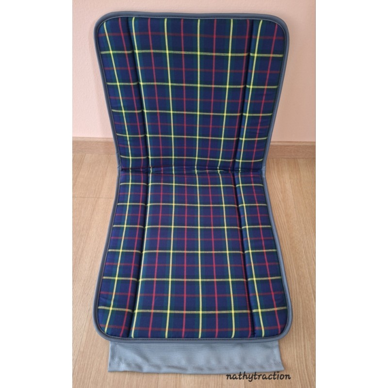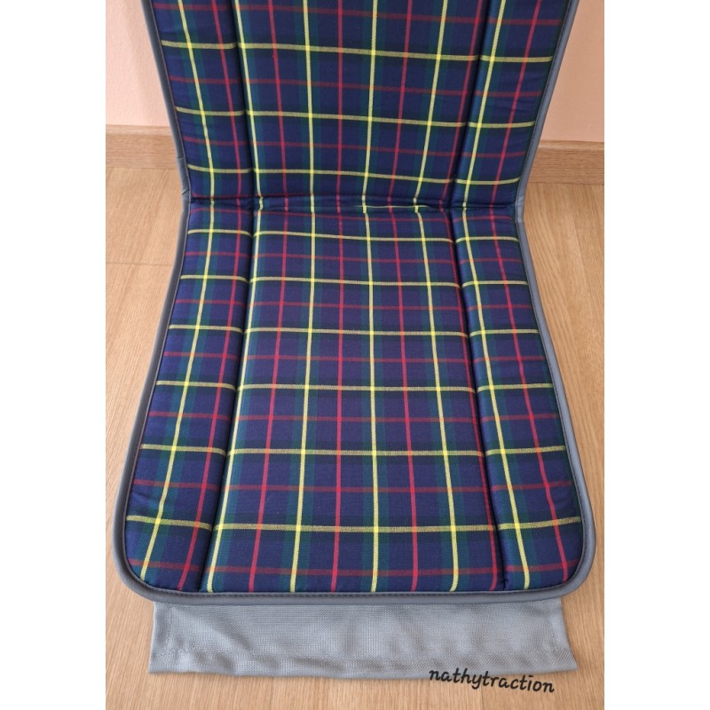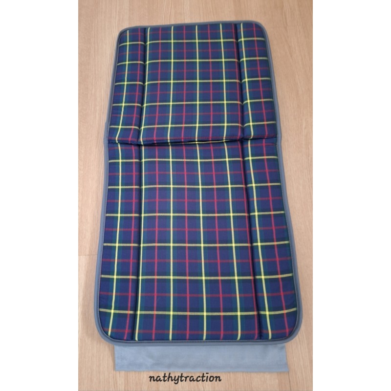 Un siège BAYADERE bleu marine écossais avec rayure jaune / rouge pour 2CV CITROËN du 04/1953 jusqu'au 11/1956.(avant ou arrière)